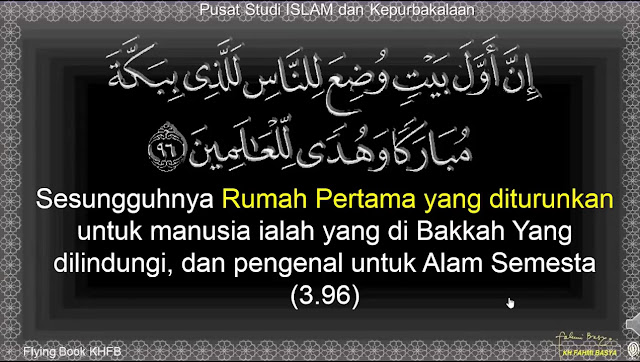 Sesungguhnya rumah pertama yang diturunkan untuk manusia ialah yang di Bakkah Mubarokah itu dan Pengenal untuk Alam Semesta.(3.96)